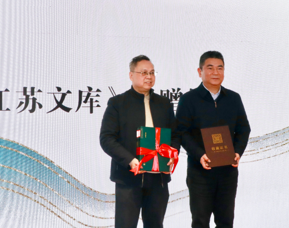郁波、左健伟、省委宣传部二级巡视员陈晔、省委党校副校长顾明进、省文化和旅游厅二级巡视员邵学文、省社会主义学院副院长夏涛共同为方志馆焕新开馆启幕。启幕式后,省委宣传部向省方志馆捐赠江苏文化集大成之作、历史上第一部江苏文化百科全书——《江苏文库》。省地方志工作办公室向省委党校、省社会主义学院捐赠全国首部省域古代城市图志——《江苏古代城市图志》。